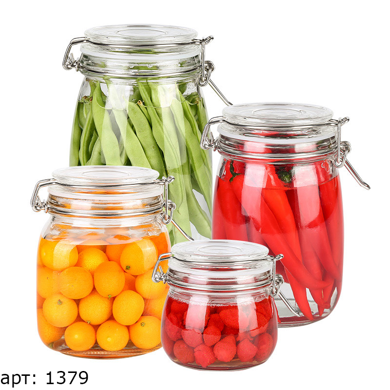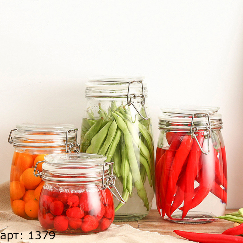 Банка стеклянная Grass с зажимом
